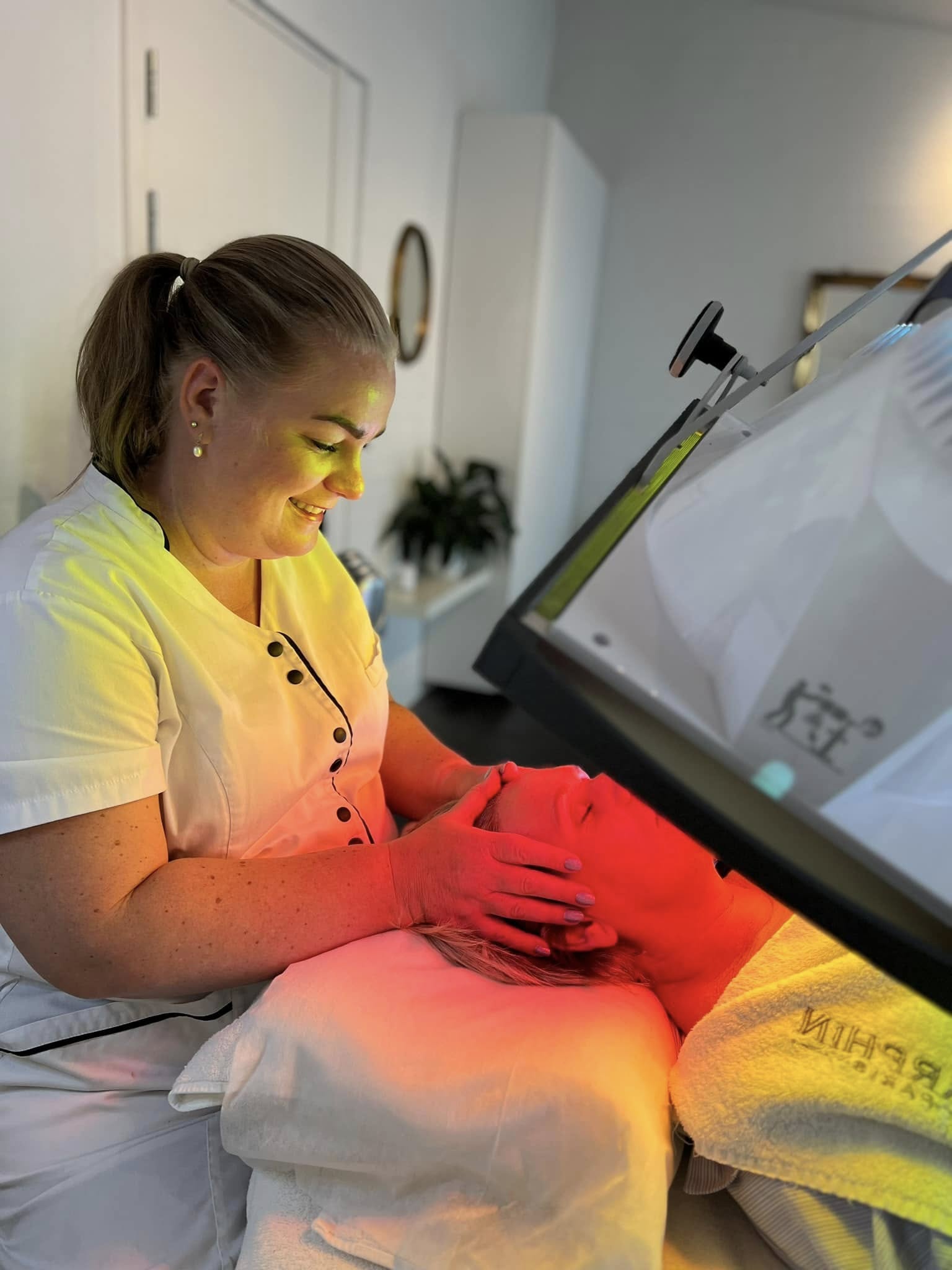 15 minutters sessioner påvirker hele det neuro kosmetiske system associeret med døgnrytme, velvære, kollagen dannelse og optimerede hudfunktioner.